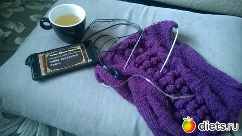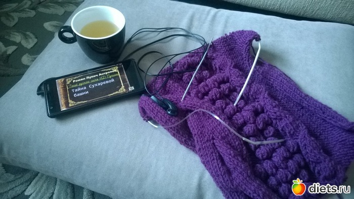 После 16.00 пила зеленый чай и вязала кардиган под аудиокнигу про сыщика Путилина.