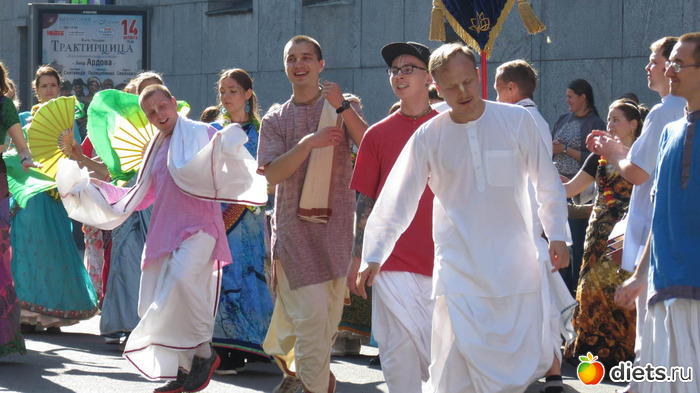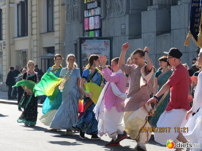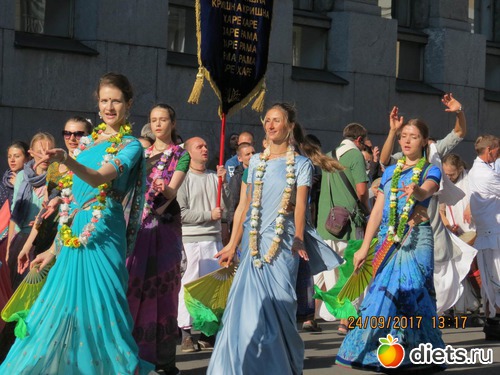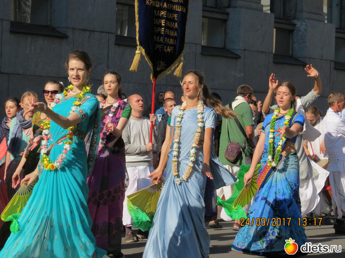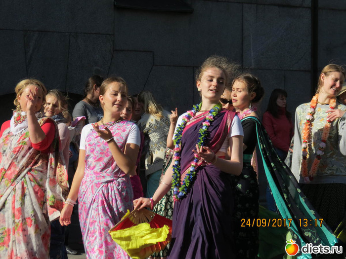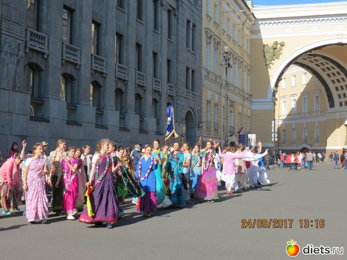 "На дворцовой было ооочень людно. Уже на подходах к ней встретились счастливые кришнаиты. Как хорошо они поют! Танцевали все вместе с веерами и в разноцветных одеждах, подставляя лица сентябрьскому солнышку."