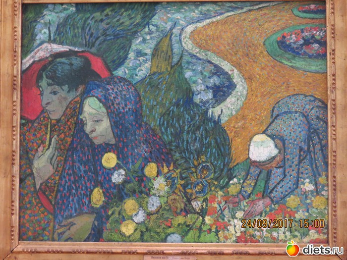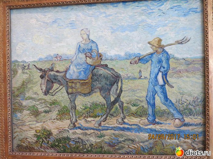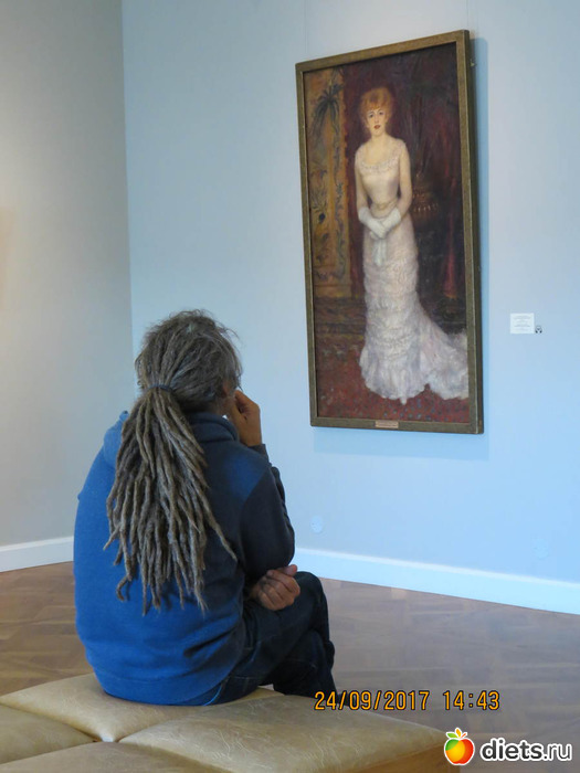 "Но вчера эрмитаж мне и не понадобился, потому что он частично переехал в главный штаб и даже моя любимая картина. А нового мне тоже здесь хватило с лихом. Очень устала, на ногах мозоли и горят подошвы. Но я счастлива. Шагал, Ван Гог, Матисс, Моне, Гоген... я в раю! Оказывается, от картин можно получить экстаз. Если пропускать через себя."