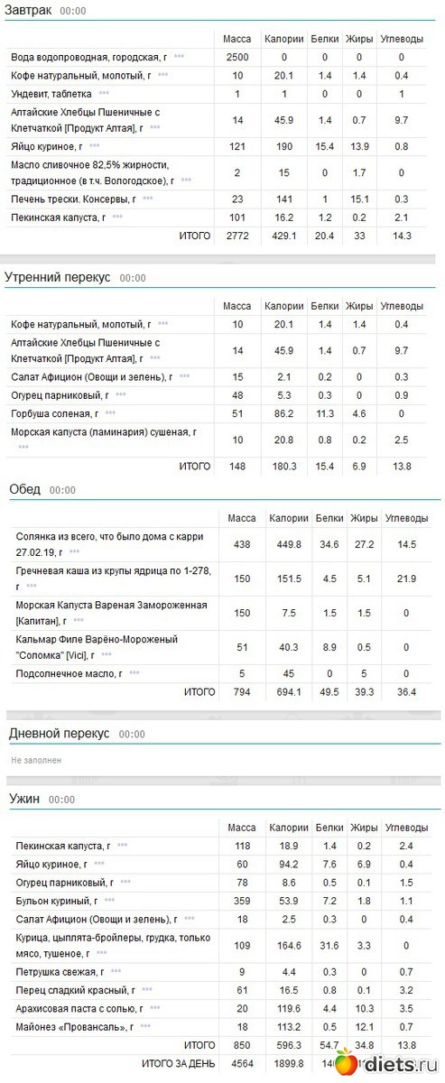 Калорийность продуктов