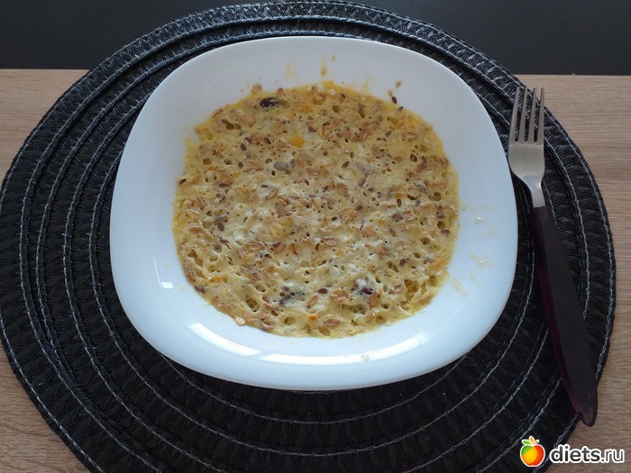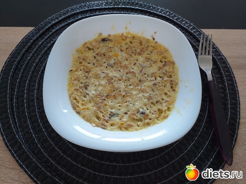 Завтрак: запеканка (творог, яйцо, геркулес, варенье)