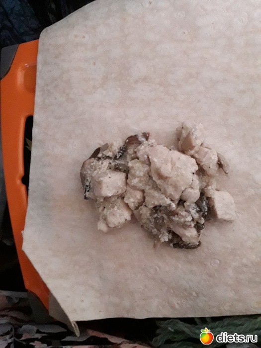 -КУРИНАЯ ГРУДКА С БЕЛЫМИ ГРИБАМИ В ЛАВАШЕ, ЧАЙ