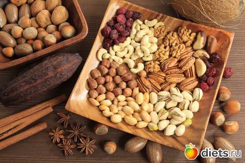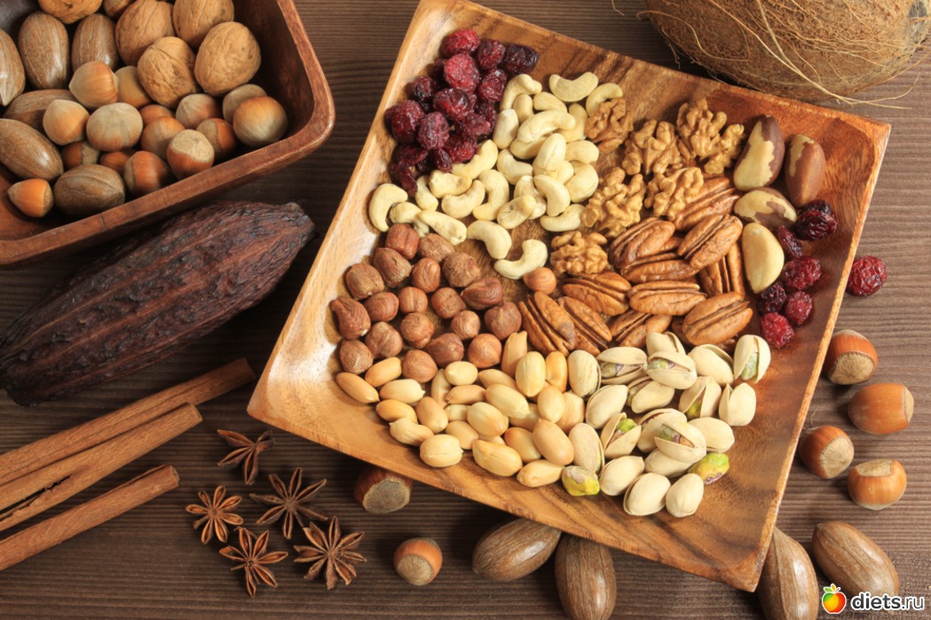 Орехи снижают концентрацию холестерина, усиливают мозговую деятельность благодаря высокому содержанию белков, жирных кислот и целого набора полезных микроэлементов. Орехи нельзя есть безостановочно — они калорийны и могут привести к набору лишнего веса.