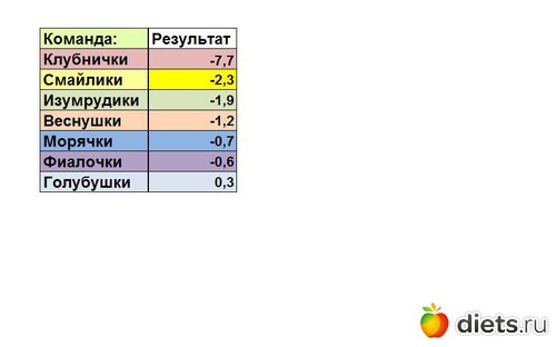 за неделю мы вместе стали легче на 14,1кг!!! Наше путешествие по Радуге продолжается и вместе мы добьемся своей цели - станем стройными мамочками-клубничками!