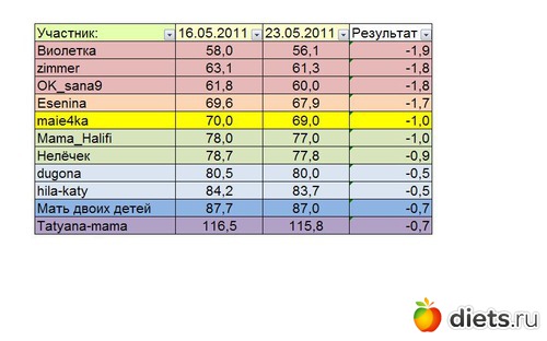 Львенок-Тигренок, slobodianka, gaidlari, Львица, Иней, diana01062004, liebe_82, irishhur, Ольга и дети, natalliv, Айриш, Лена76, Alena110887, Таннечка - вы на этой неделе немного расслабились - как результат нули и плюсики в таблице!