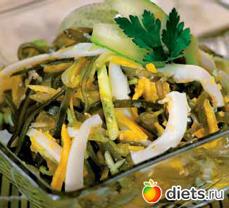 кальмары400 г морская капуста 400 г тыква 150 г огурец 1 шт соль