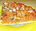 или просто намазать пиццу овощной икрой из домашних заготовок на зиму и сверху ломтики помидор выложить,