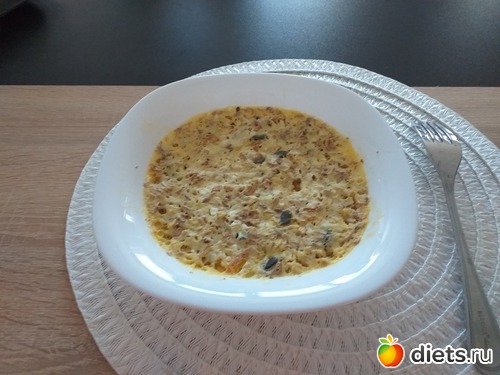 Завтрак: запеканка (творог, яйцо, геркулес, варенье)