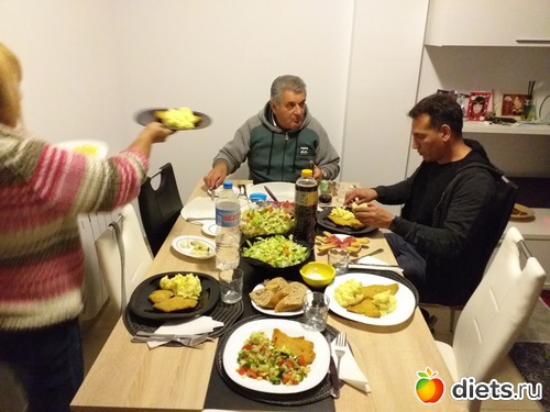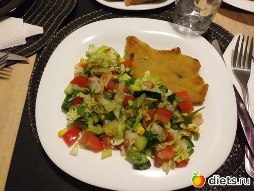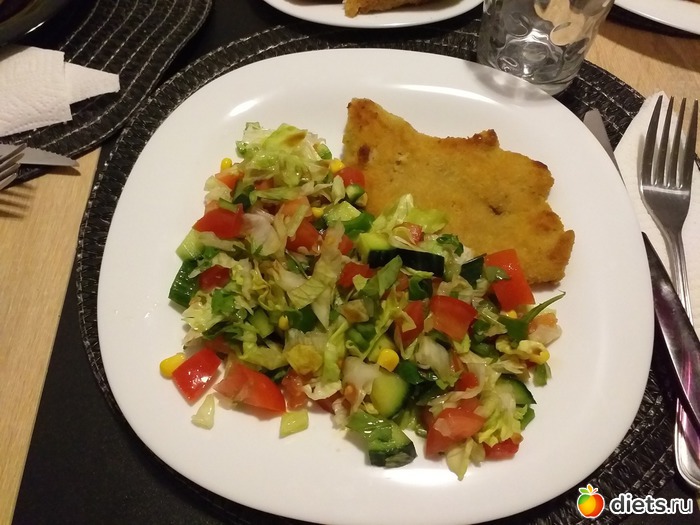 2 ведра салата, которые я настрогала, стоят в холодильнике нетронутыми (хотя вроде как средиземноморская овощи подразумевает в большом количестве). Короче, все ели пюре с миланесас, а я молодец