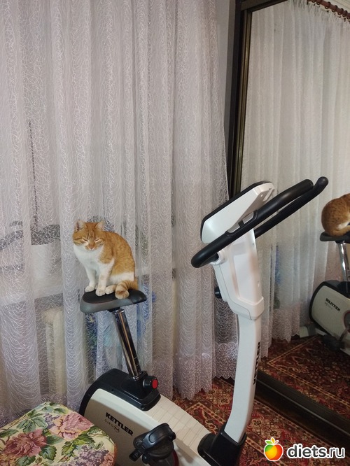 У меня велотренажёр, мой любимый. Периодически пользуюсь, выносливость и сердце натренировал, есть гантели, правда, по 1.5 кг, есть обруч, вот им не пользуюсь.
