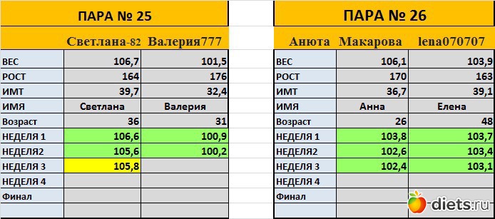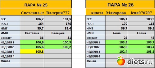 Начинала с веса 102,4. потом 101.6, далее 101,1 и 3 неделя 99,9 кг.