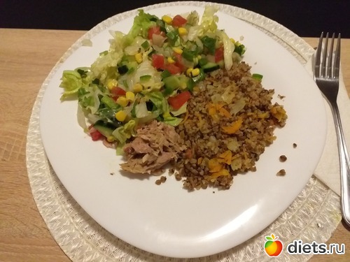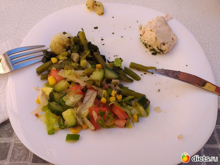 Питание такое однообразное, отчет просто копирую каждый вечер. Но не хватает фантазии, чтоб и не готовить, и сбалансированно было. Чего там придумаешь из "белок+овощи+гарнир"...