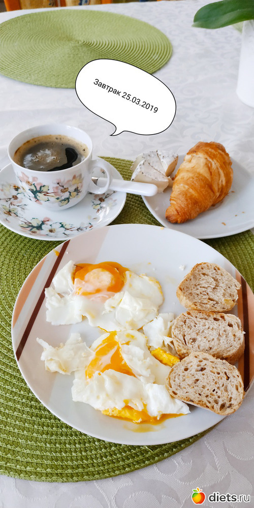 Глазунья из двух яиц, круасан, сыр, кофе