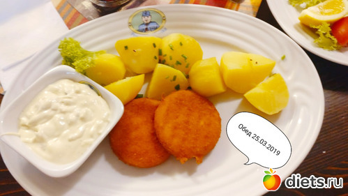 Жаренный сыр камамбер с картофелем и соусом тартар. (Картофель и соус отдала нашему мужчине, мне хватило просто сыра)