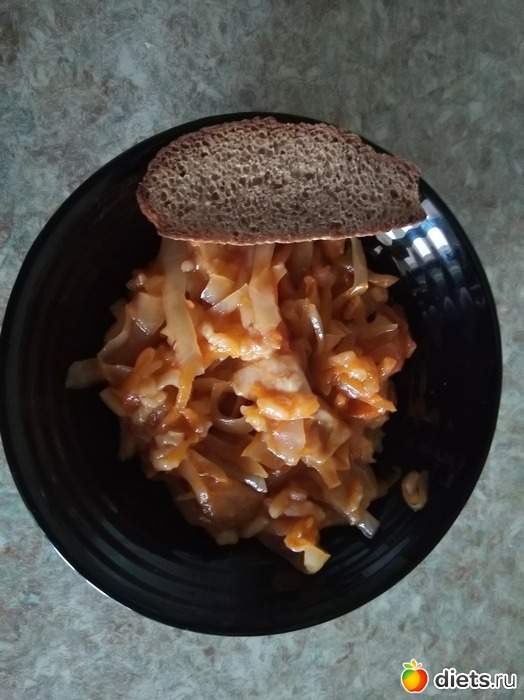Обедать мне после картошечки совсем не хотелось, но пришлось в себя запихнуть под закрытие пищевого окна тушеную капусту с грибами: