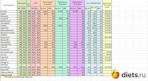 Таблица веса участников группы 12.03.2019