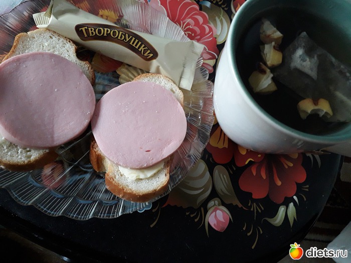 -ОМЛЕТ, БУТЕРБРОДЫ С МОЛОЧНОЙ КОЛБАСОЙ, ЧАЙ С ЯПОНСКОЙ АЙВОЙ