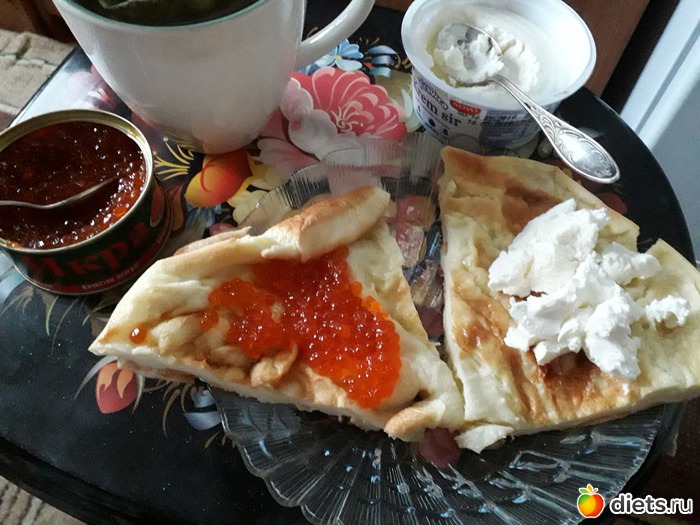 -БЛИН "ГОЛЛАНДСКАЯ ДЕТКА"С ИКРОЙ И ТВОРОЖНЫМ СЫРОМ, ЧАЙ С ЯПОНСКОЙ АЙВОЙ
