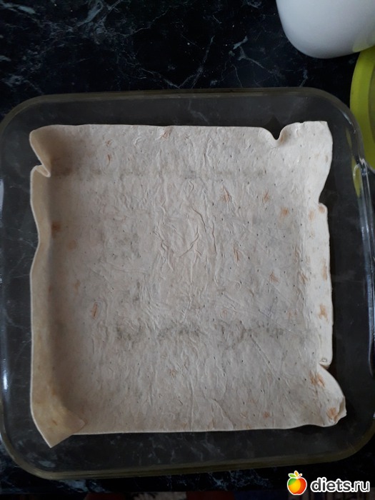 Подготовьте листы лаваша — вырежьте их по размеру формы. Сделать это можно кулинарными или, если нет таких, самыми обычными ножницами.