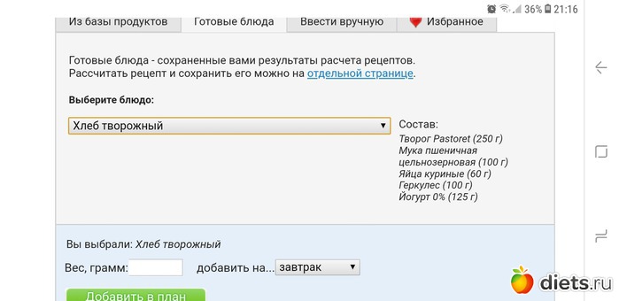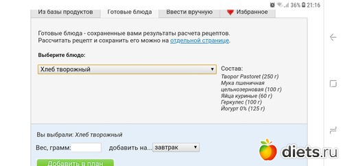 Калорийность продуктов