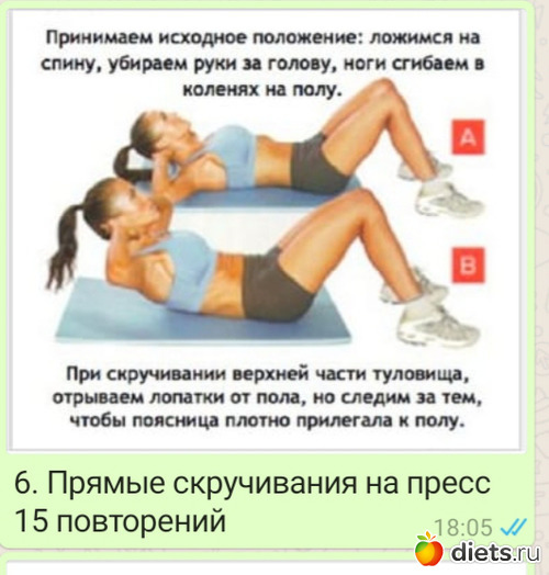 6. Пресс прямые скручивания 15 повт.