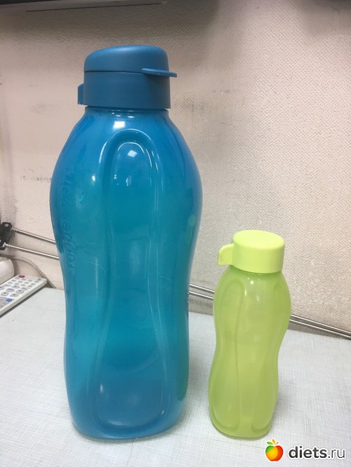 Вот они, мои поилки: из синей-на работе, а из зеленой-на прогулке