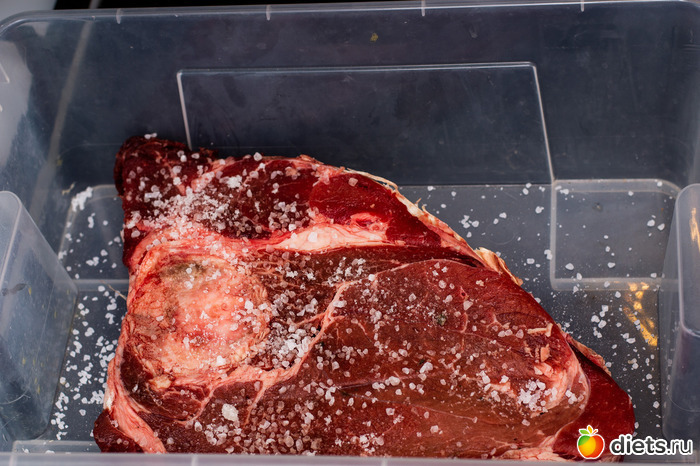 Ну и самый главный ингредиент - хороший кусок постного жилистого мяса на кости. Лучше на трубчатой, самый лучший результат выходил если взять поперечный срез коровьей ноги. Причём если его предварительно оставить в соли и холоде на два-три дня - получалось вообще наиболее достойно и главное не съесть мясо до приготовления супа.
