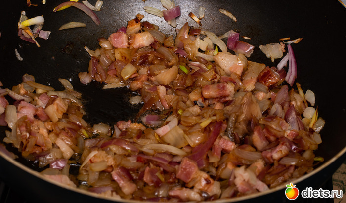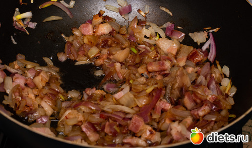 Ещё если вдруг в холодильнике есть копчёный бекон или грудинка - можно тоже добавить, но особой надобности нет.