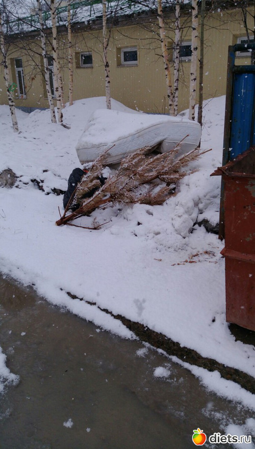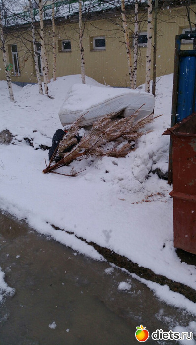 Тоже на днях в мусорном баке ёлочка зелёненькая торчала,тоже удивилась) Жалко живые ёлочки,росли б себе где нибудь...