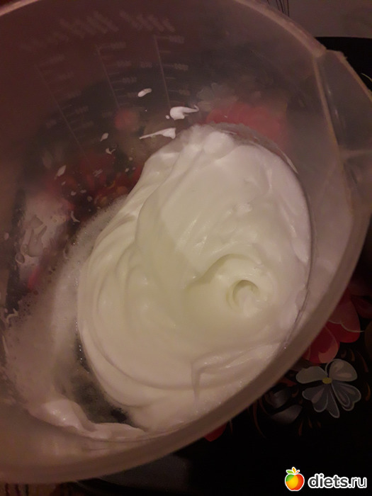 Белки охладить. Взбить в крепкую пену.