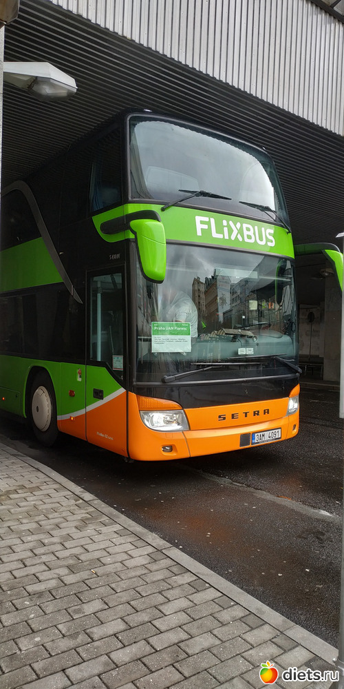 В Прагу ехали на двухэтажном автобусе, наши места были на втором этаже первые.