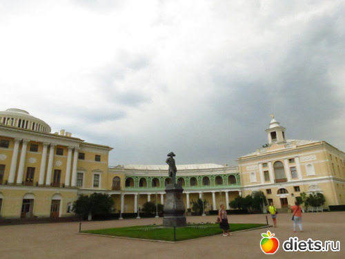 С погодой в тот день нам опять повезло. Была двойная экскурсия. Пушкин-Павловск. Когда были в Пушкине, то была жарища, а когда приехали в Павловск, то солнце сжалилось над нами, сначала деревья укрыли от палева, а потом и тучи скрыли солнце.