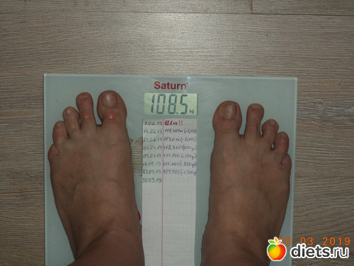 Ну и о взвешивании.. Сегодня снова довольная как слон!!)) отвес минус 1кг200!! ( фото прилагаю)) И сейчас наша особа весит уже 108.500!!