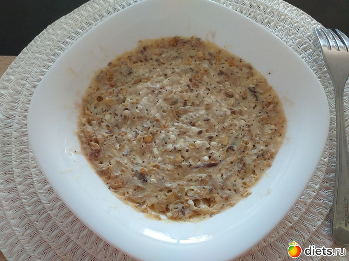 Завтрак: запеканка (творог, яйцо, геркулес, варенье)