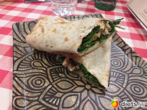 Ужин: буррито с лососем и шпинатом (кафе, калории наугад)