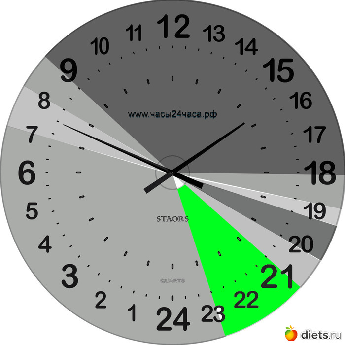 Ну и наконец, тренировки. Тренировками, что бы ни говорили, можно сжечь безумное количество калорий. Это практически доказал как этот парень с фото выше (если кто не узнал, это многократный олимпийский чемпион Майкл Фелпс), так и множество других спортсменов. Проблема в том, что все они - профессиональные спорсмены, могущие потратить на тренировки грандиозное количество сил, времени и денег. Обычный человек проводит на работе все восемь, а то и девять часов, тратит два часа на дорогу, и хочет ещё семь-восемь часов поспать. [картинка с 24 часовым циферблатом] Утром неплохо бы ещё позавтракать и собраться. Вечером поужинать. Часик на потупить в телевизор - что уж там - необходимо, иначе сгоришь.