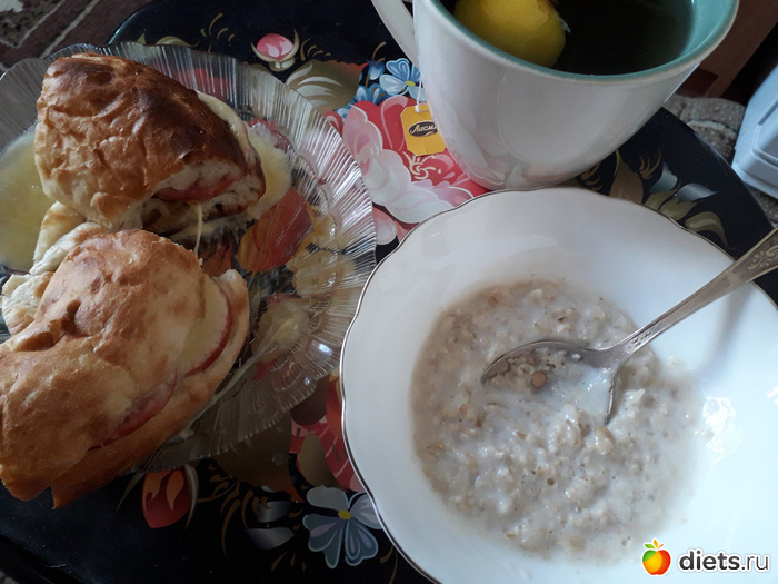 -ГЕРКУЛЕСОВАЯ КАША НА ВОДЕ, С КУНЖУТОМ.2 ГОРЯЧИХ БУТЕРБРОДА ИЗ УЗБЕКСКОЙ ЛЕПЕШКИ С СЫРОМ И В/К КОЛБАСОЙ. ЧАЙ С ЛИМОНОМ