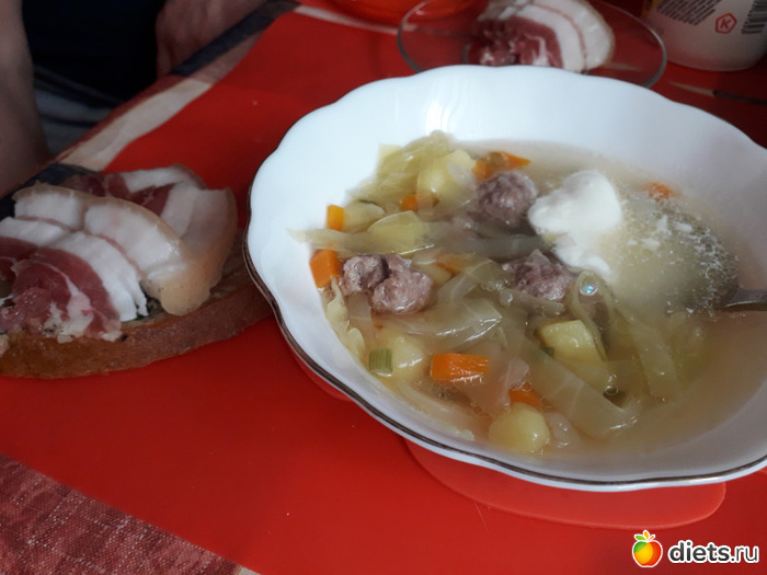 -ЩИ С ФРИКАДЕЛЬКАМИ. САЛО, ОВОЩИ. КОМПОТ