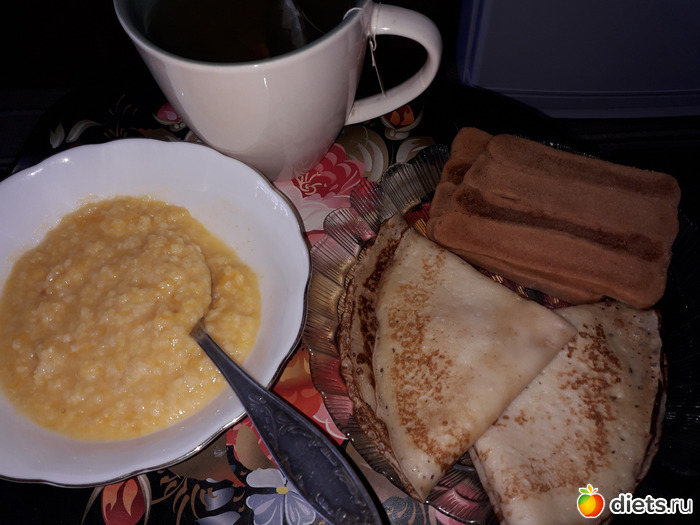 -КАША ПШЕННАЯ, БЛИНЧИКИ, ЧАЙ С ЯПОНСКОЙ АЙВОЙ, БЕЛЕВСКАЯ НАТУРАЛЬНАЯ ПАСТИЛА