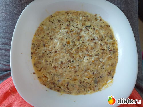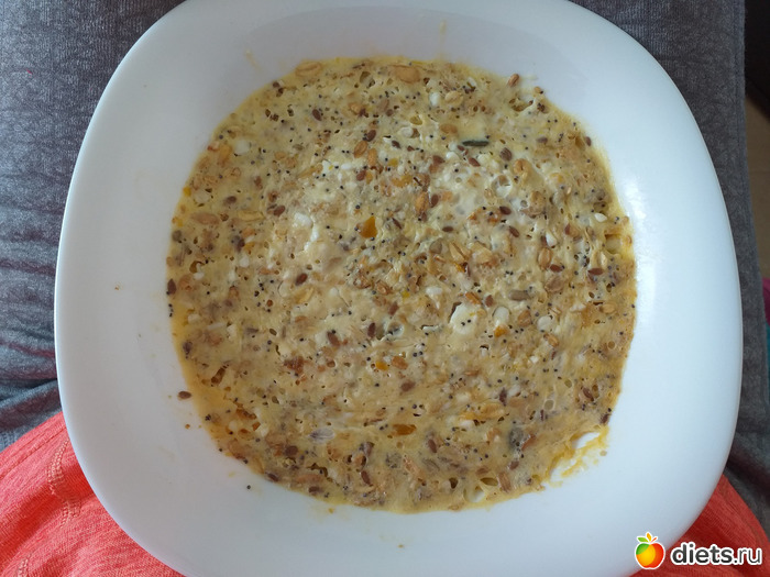 Завтрак: запеканка (творог, яйцо, геркулес, варенье)