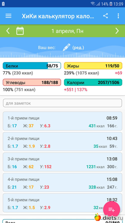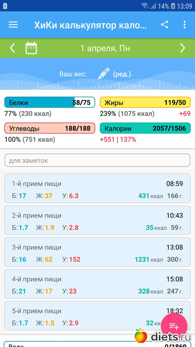 Калорийность продуктов