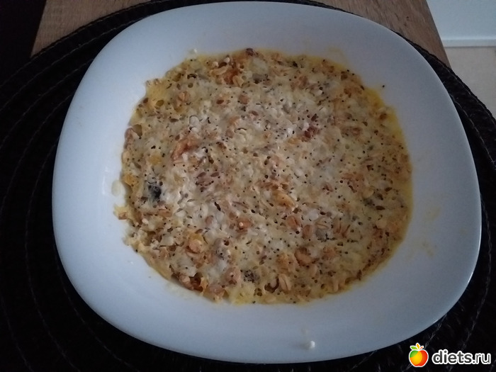 Завтрак: запеканка (творог, яйцо, геркулес, варенье)