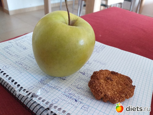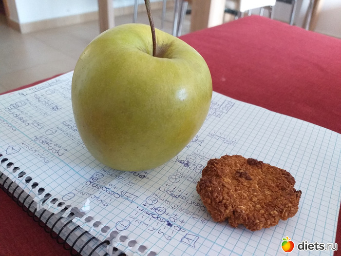 Ланч: яблоко, овсяная печенюшка (геркулес, йогурт 0%, мед, корица)