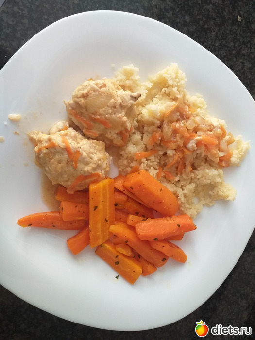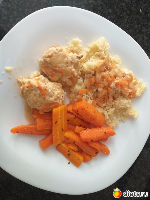Обед: куриные тефтели, морковь запеченная, кус-кус