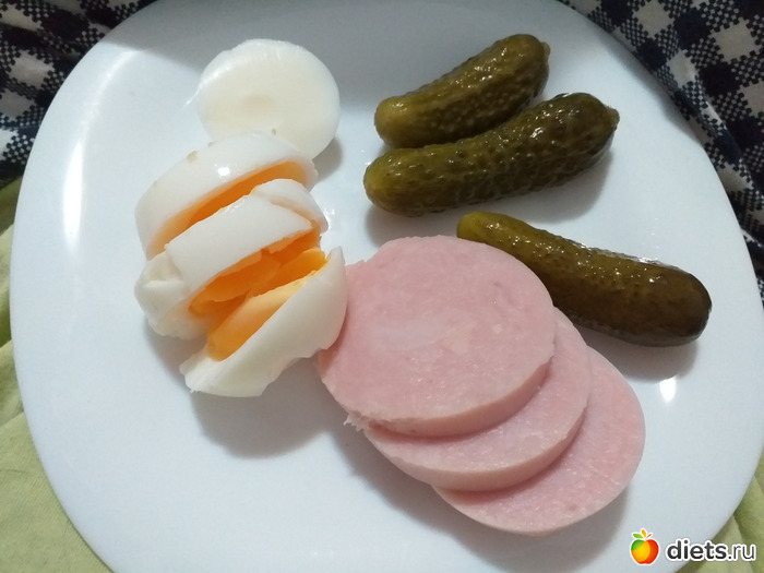 Ужин: огурчики маринованные, яйцо, ветчина из индейки (идеологически правильная