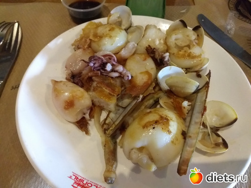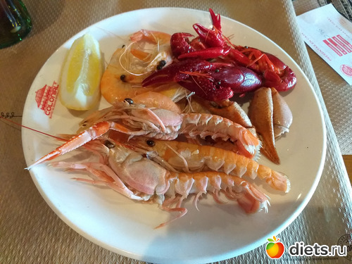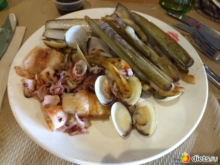 Обед: ходили в ресторан, ела только белок; морепродукты жарили на масле, просила поменьше, но вряд ли там кофейная ложка была