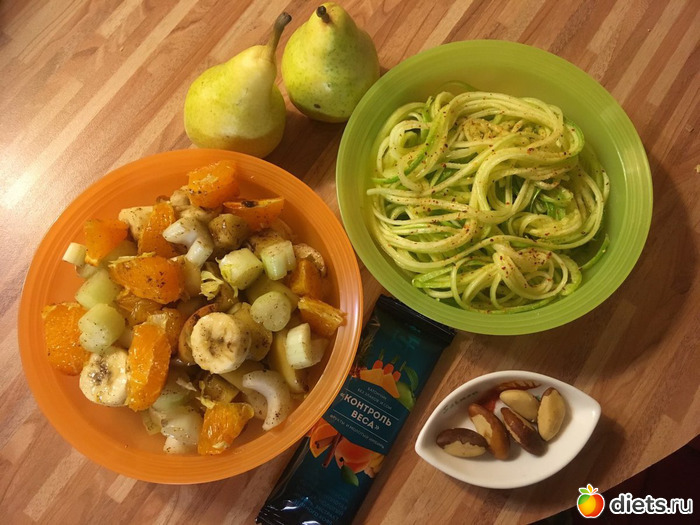 Минус 100. Тоже хорошо. Сегодня фрукты. Вчера прошла через магазин, хапнула яблоки и грушки по акции. Кабачки до сих пор " кусаются", но все равно купила, очень хочется.
