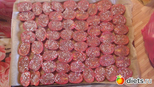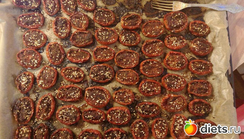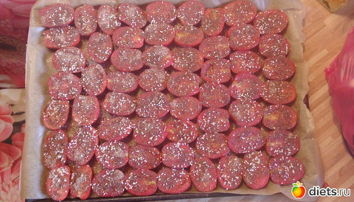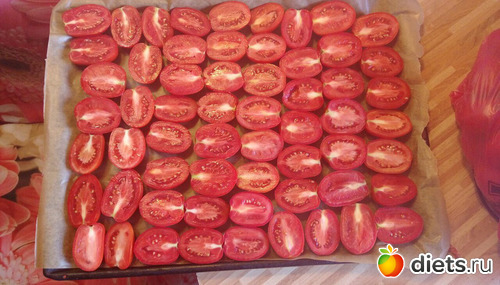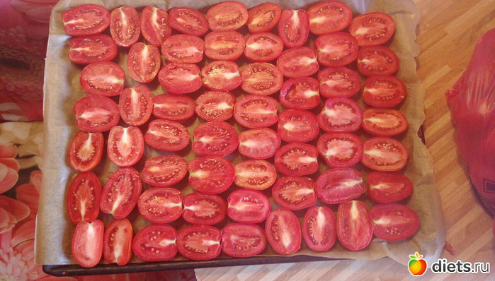 Помидоры выкладываются на противень на бумагу для выпечки или силиконовый коврик( что есть).