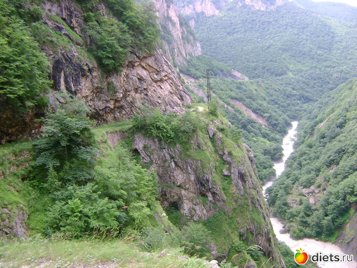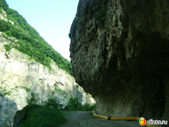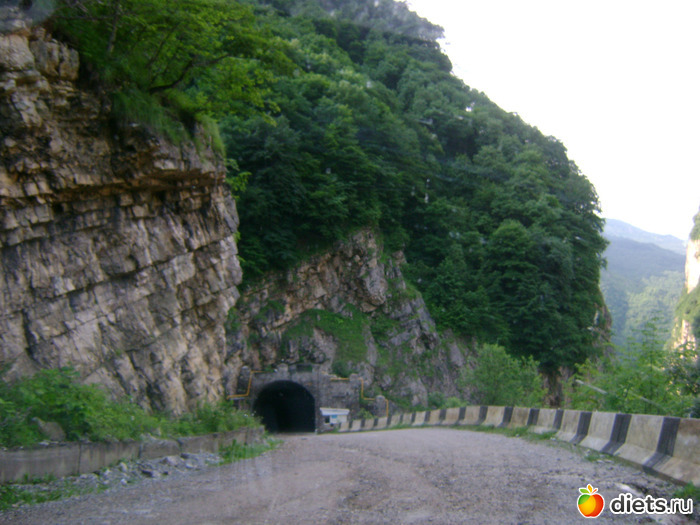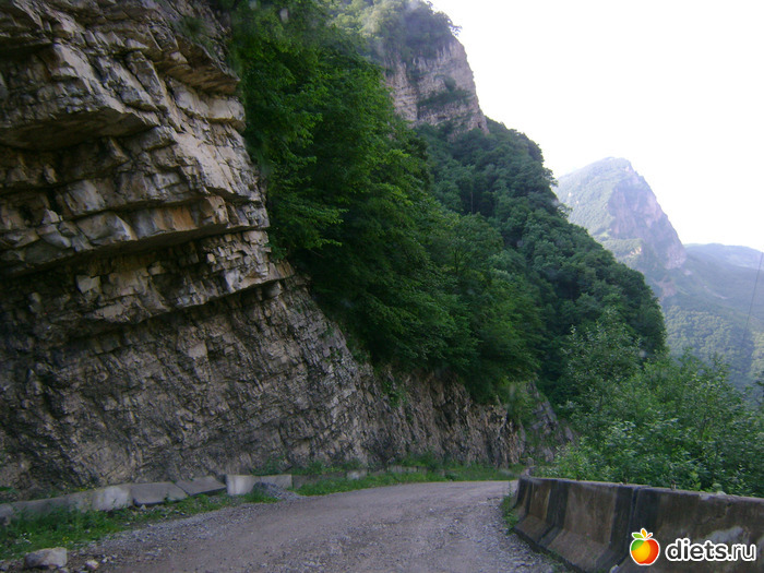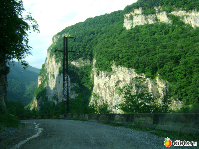 Вспомнила как ехала в автобусе на Красную Поляну по дороге, вырубленной в скале. Гид спросила, у кого есть фотоаппарат чтобы уступить свое место (а я сидела в автобусе на противоположной от обрыва стороне). Я села на место гида, посмотрела в окно и стала визжать! И услышала как весь автобус визжит.... Потом смогла все таки несколько снимков сделать.... Там еще не было рверсивного движения, как сейчас. В водители набирали только их числа жителей Красной Поляны, кто эту дорогу хорошо знал. Если на пути попадалась встречная машина и машина и наш автобус останавливались и меееедленно по сантиметрам разъезжались.