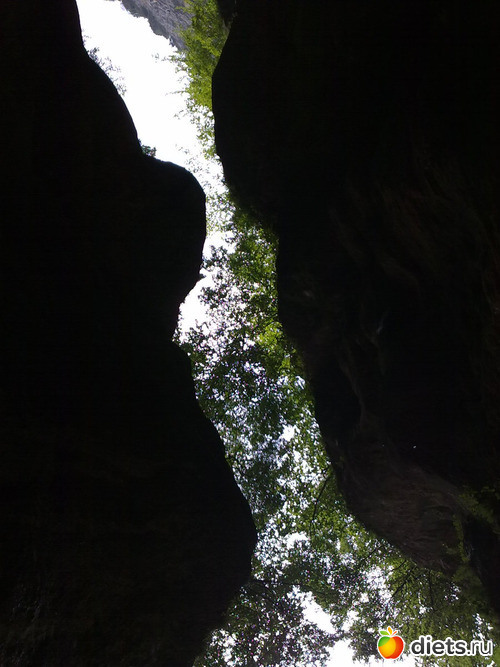 там из дырки наверху горы тоже бил водопад, люди под ним купались, было жарко
